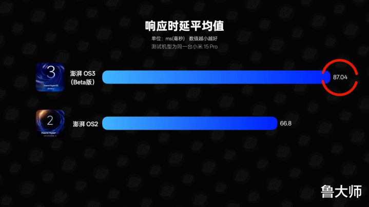最终澎湃OS 3的平均响应时延是87.04ms,对比澎湃OS 2的66.8ms,反应速度反而变慢了。